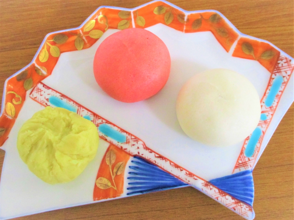紅白饅頭と施設で収穫しましたさつまいも
